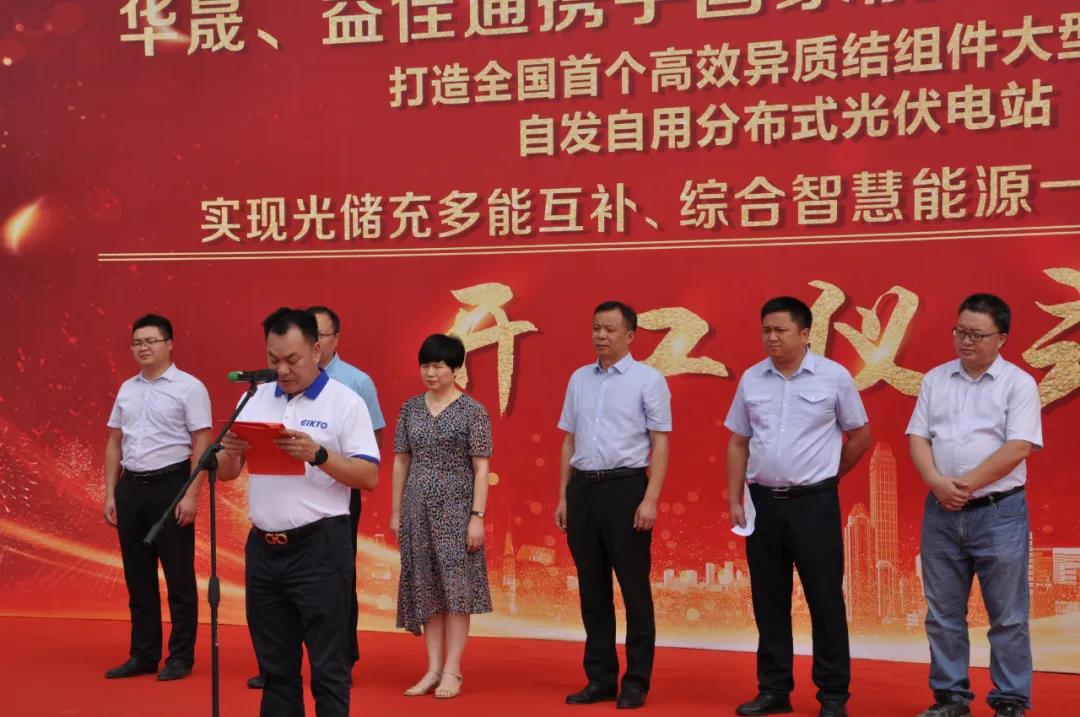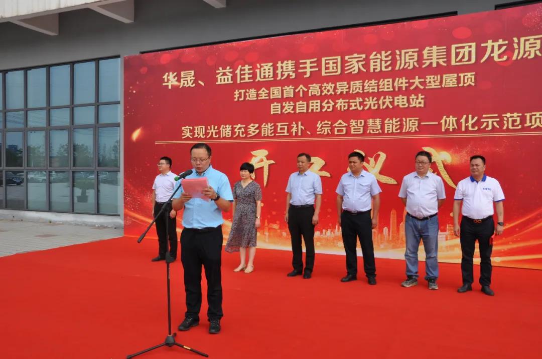9月27日上午,由益佳通、華晟新能源攜手國家能源集團龍源電力打造的全國首個高效異質結組件大型屋頂自發自用分布式光伏電站項目在益佳通廠內隆重舉行開工儀式典禮。現場參加開工儀式的領導有:宣城經開區黨工委委員,管委會副主任羅正軍、經開區黨工委委員,系統工會主席余紅、投資服務中心主任丁光華、開盛建設投資集團董事長張增華、國家能源集團龍源電力安徽公司副總經理孫明、安徽益佳通電池有限公司副總經理楊云求、華晟新能源科技有限公司總經理徐曉華和各位來賓;開工儀式由華晟新能源總經理徐曉華主持。